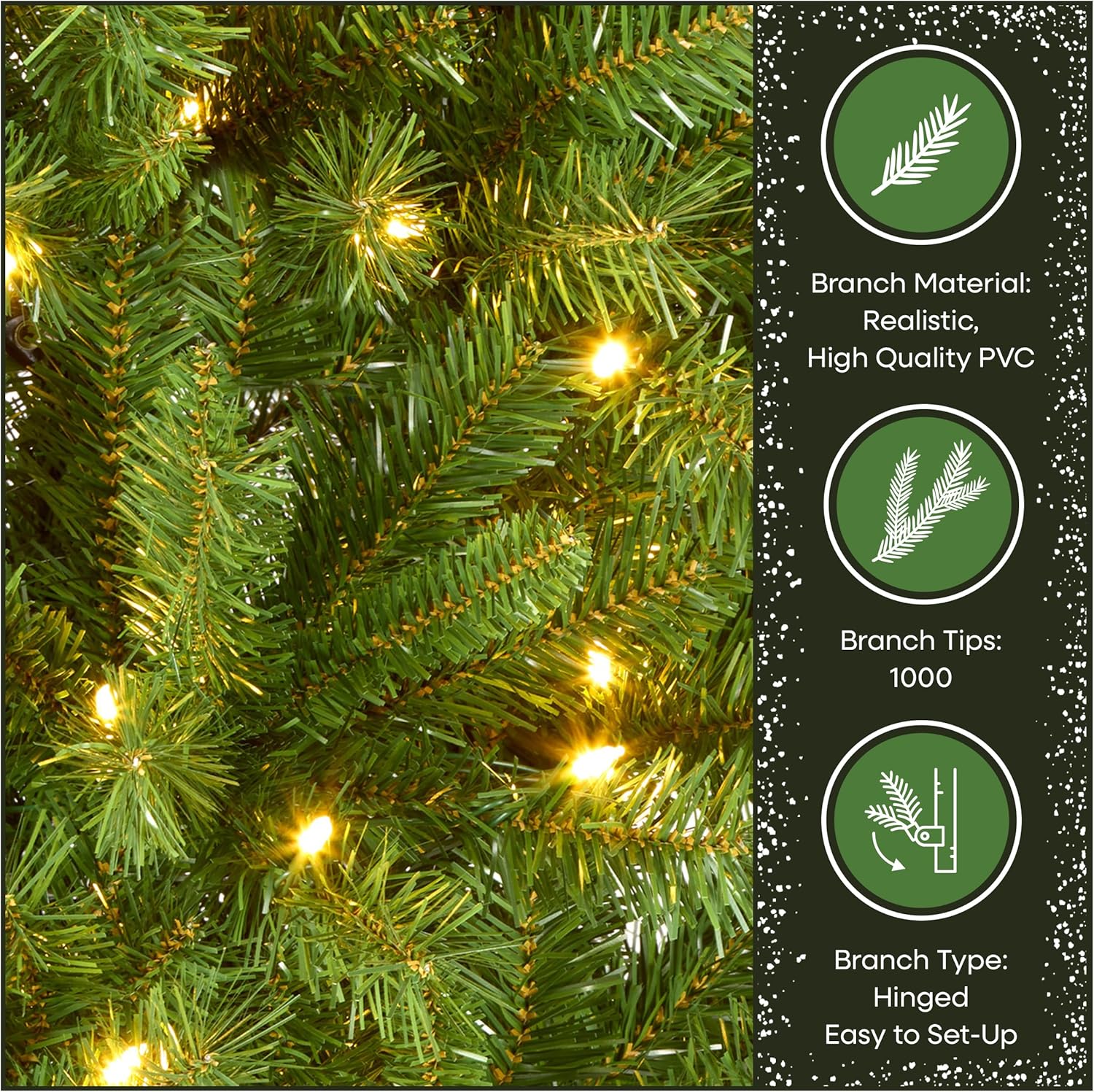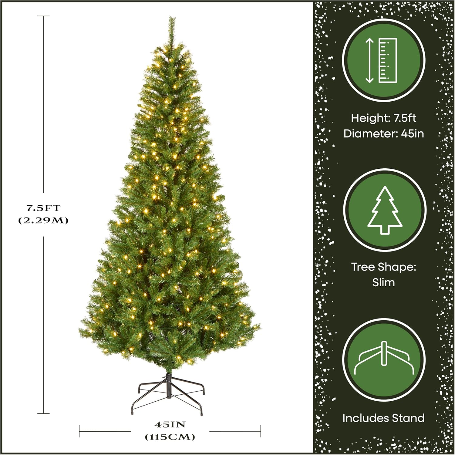 - SLIM CHRISTMAS TREE: 7.5 foot Christmas Tree with lights and 1,000 branch tips that create a lush evergreen appearance; fits perfectly in apartments, and tighter spaces